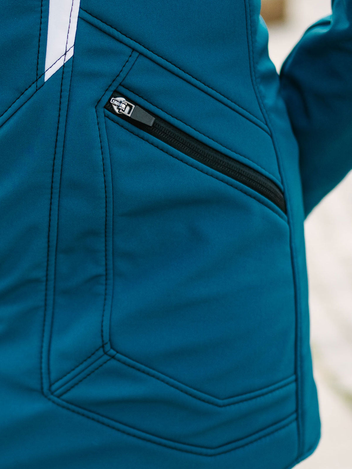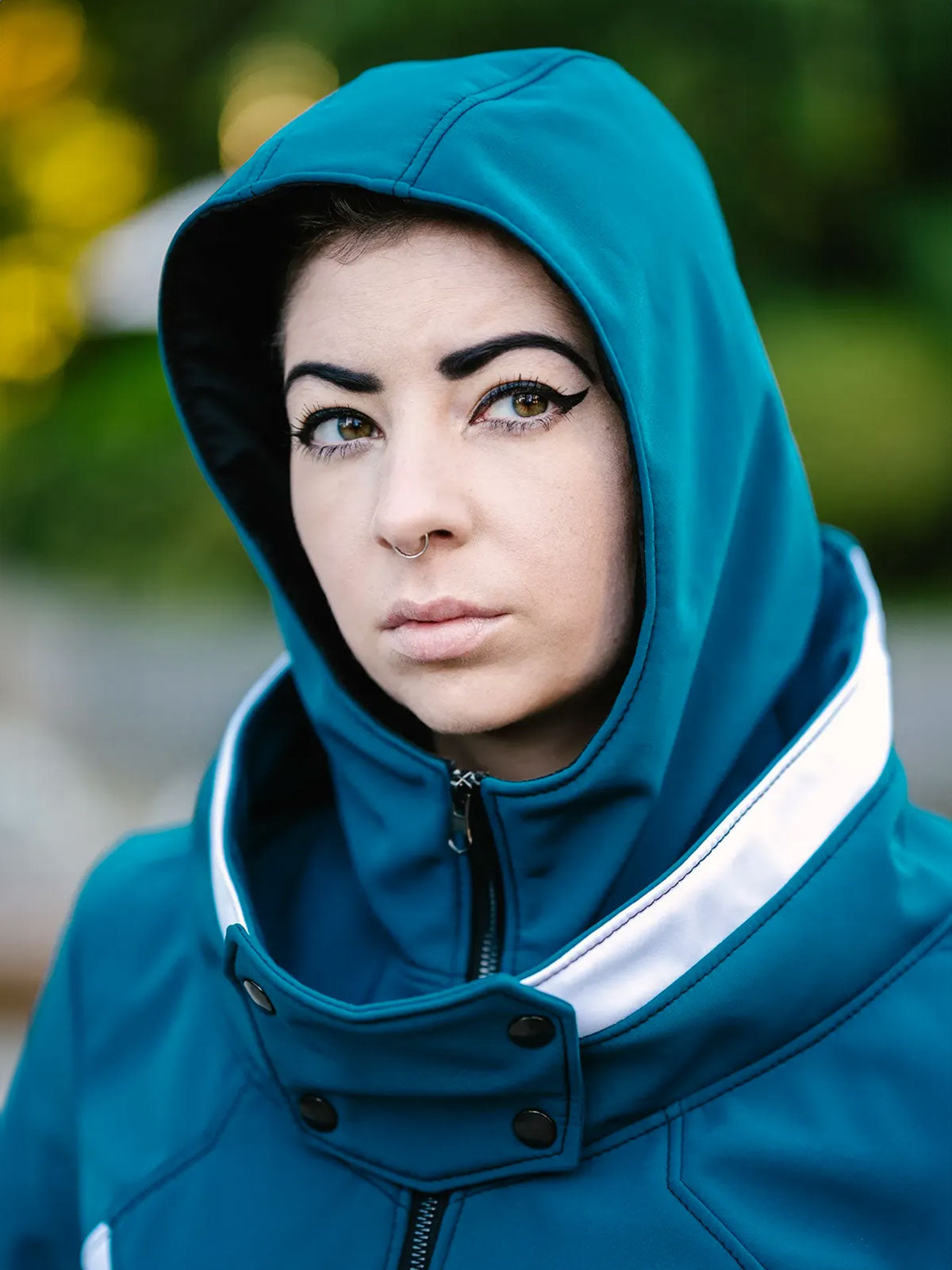 The Garrus Parka's Turian Blue outer shell mirrors the subtle color of Garrus’ armor and reflects a calm demeanor amidst the chaos of space.