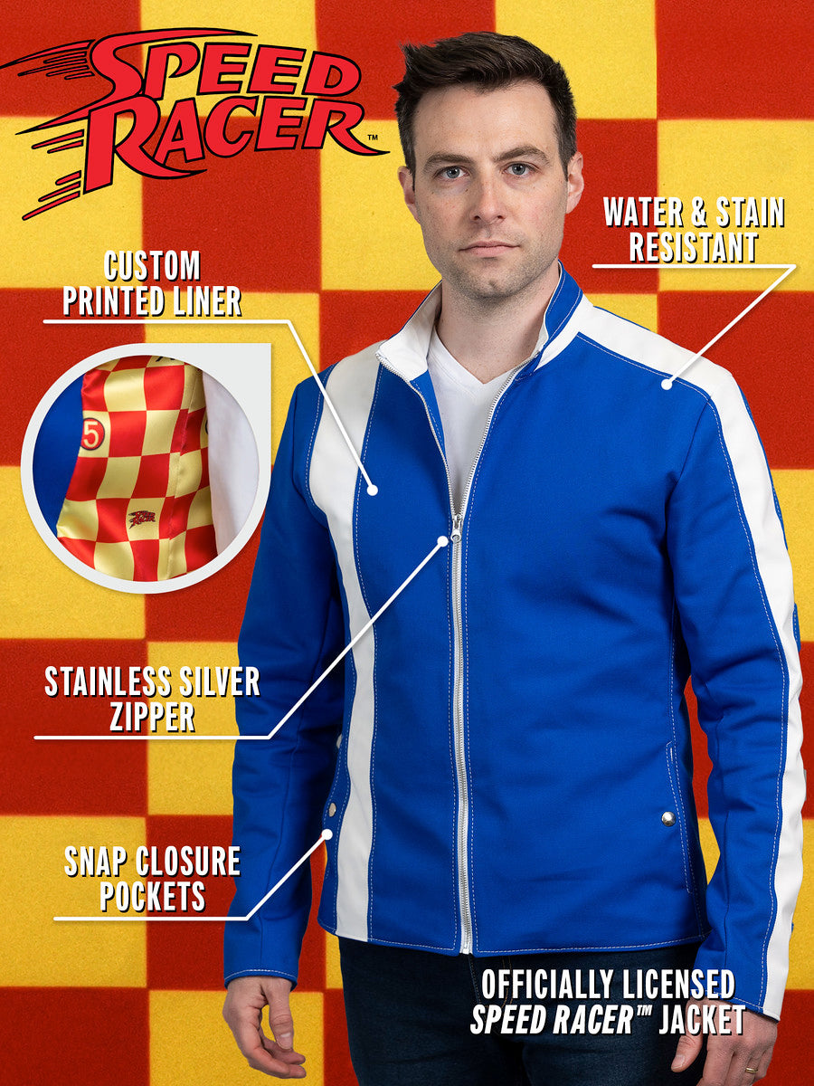 This jacket channels the precision, agility, and bold spirit of Speed Racer and his iconic Mach 5.