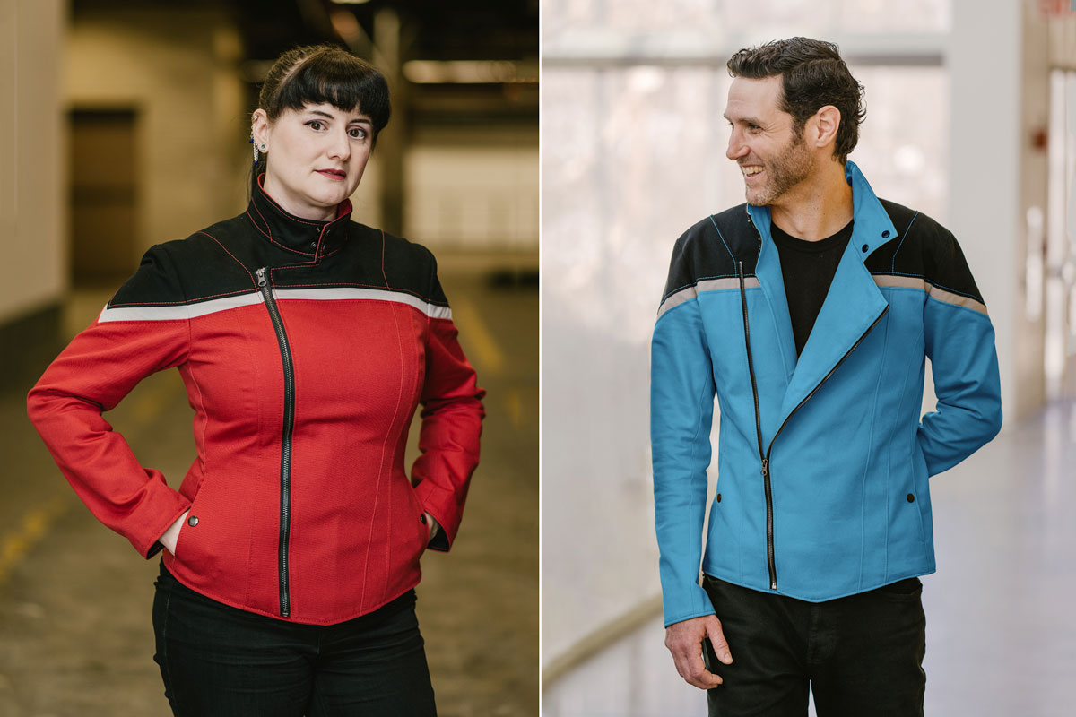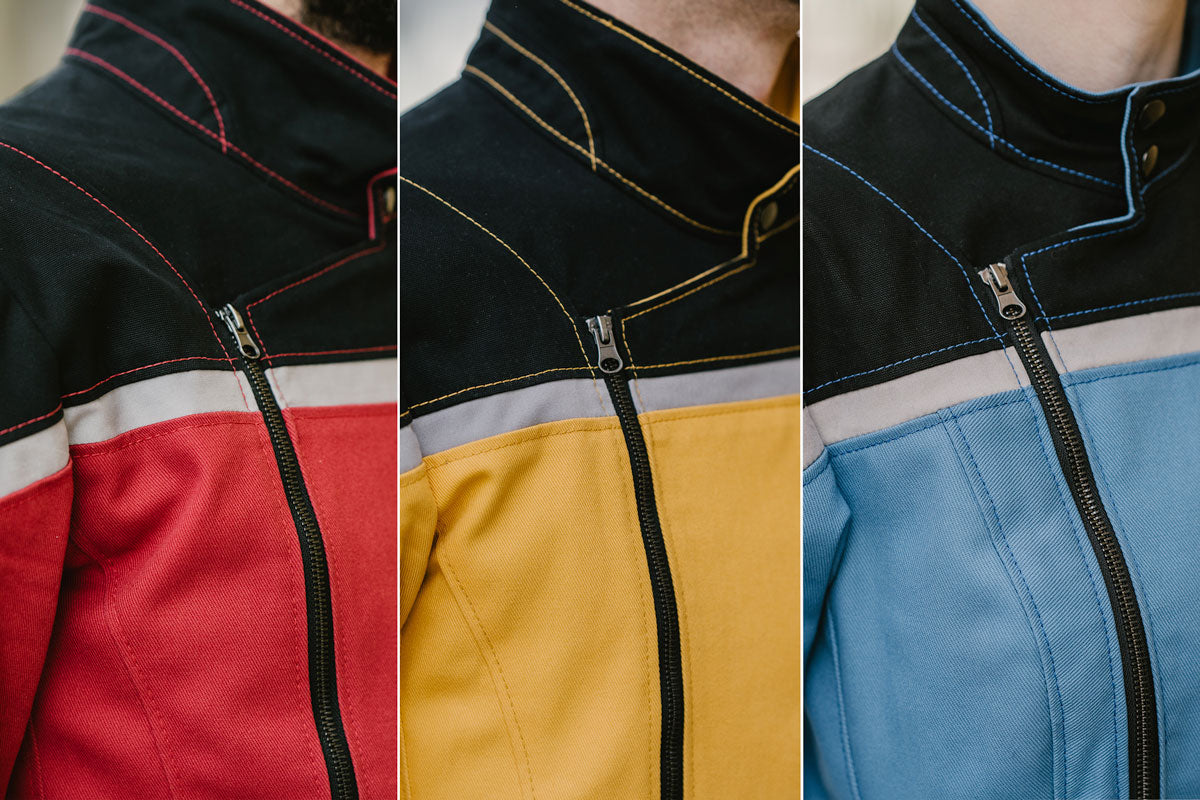 The semi-moto zip front closure and dual snap collar looks perfect on the (Lower) decks of the USS Cerritos or out with friends.