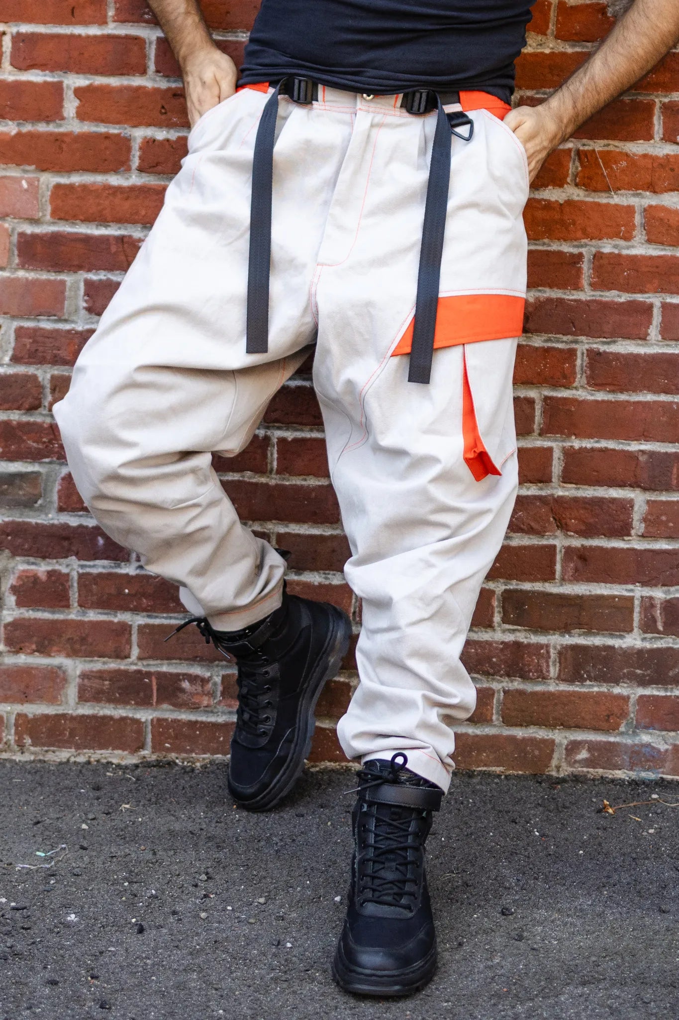 - Lunar Dust - Light gray with orange accents, black belt & hardware, and orange topstitching