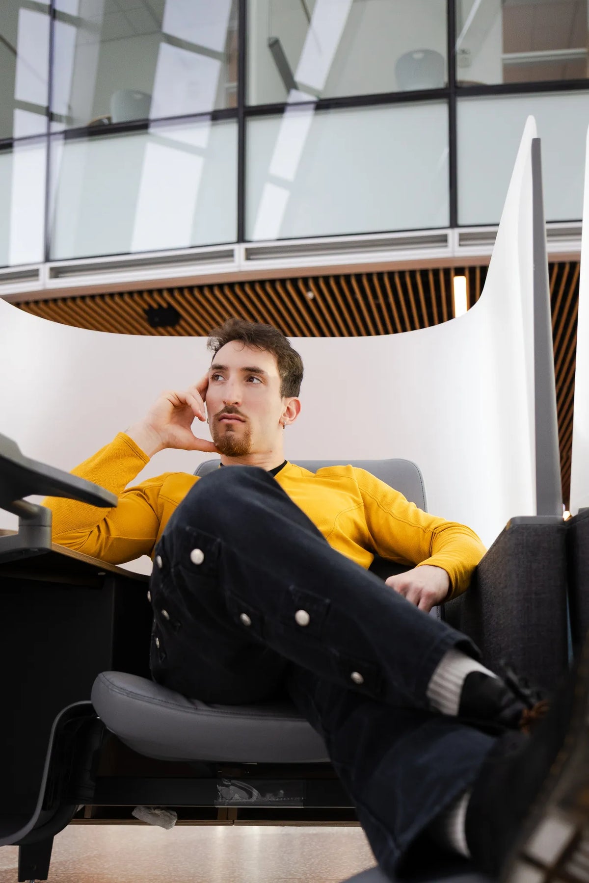 Alex is 6’1” and wearing the Starfleet 2257 Tunic - Command Gold in size 42