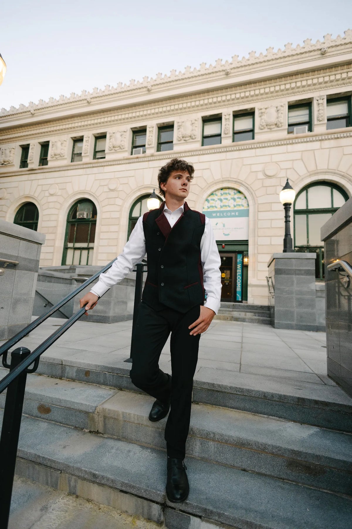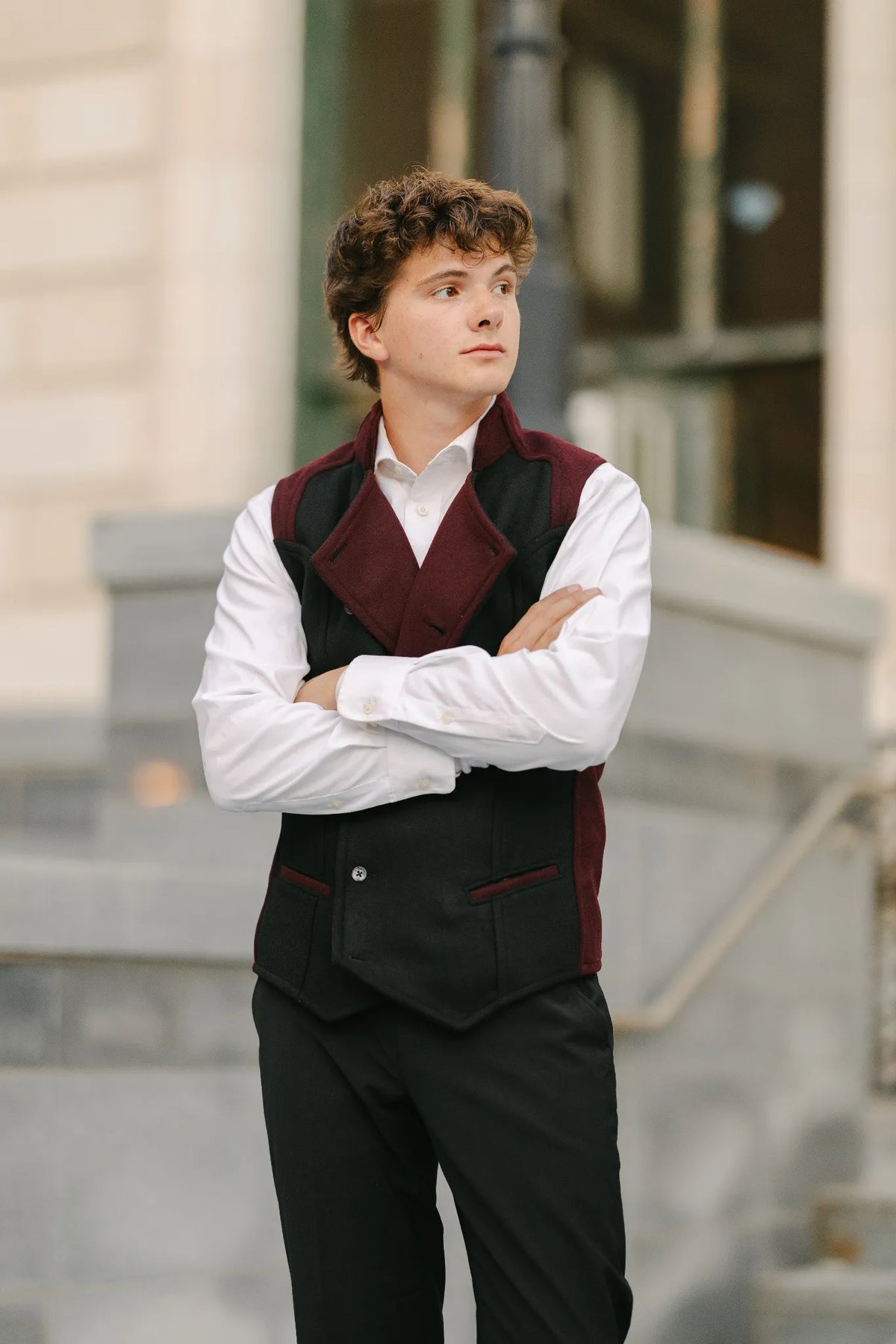 Blood Moon - Dark black melton wool with red accents and red topstitching